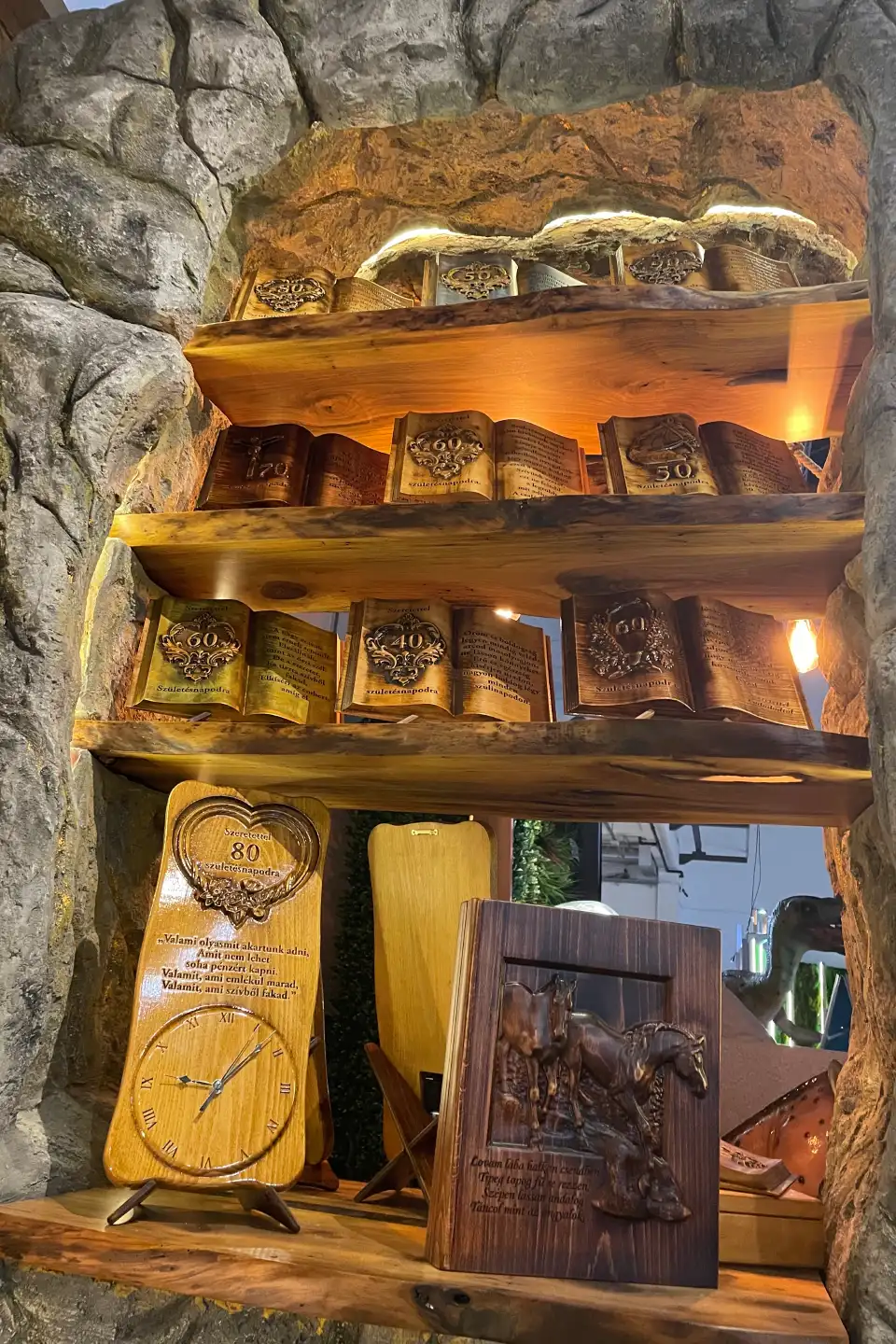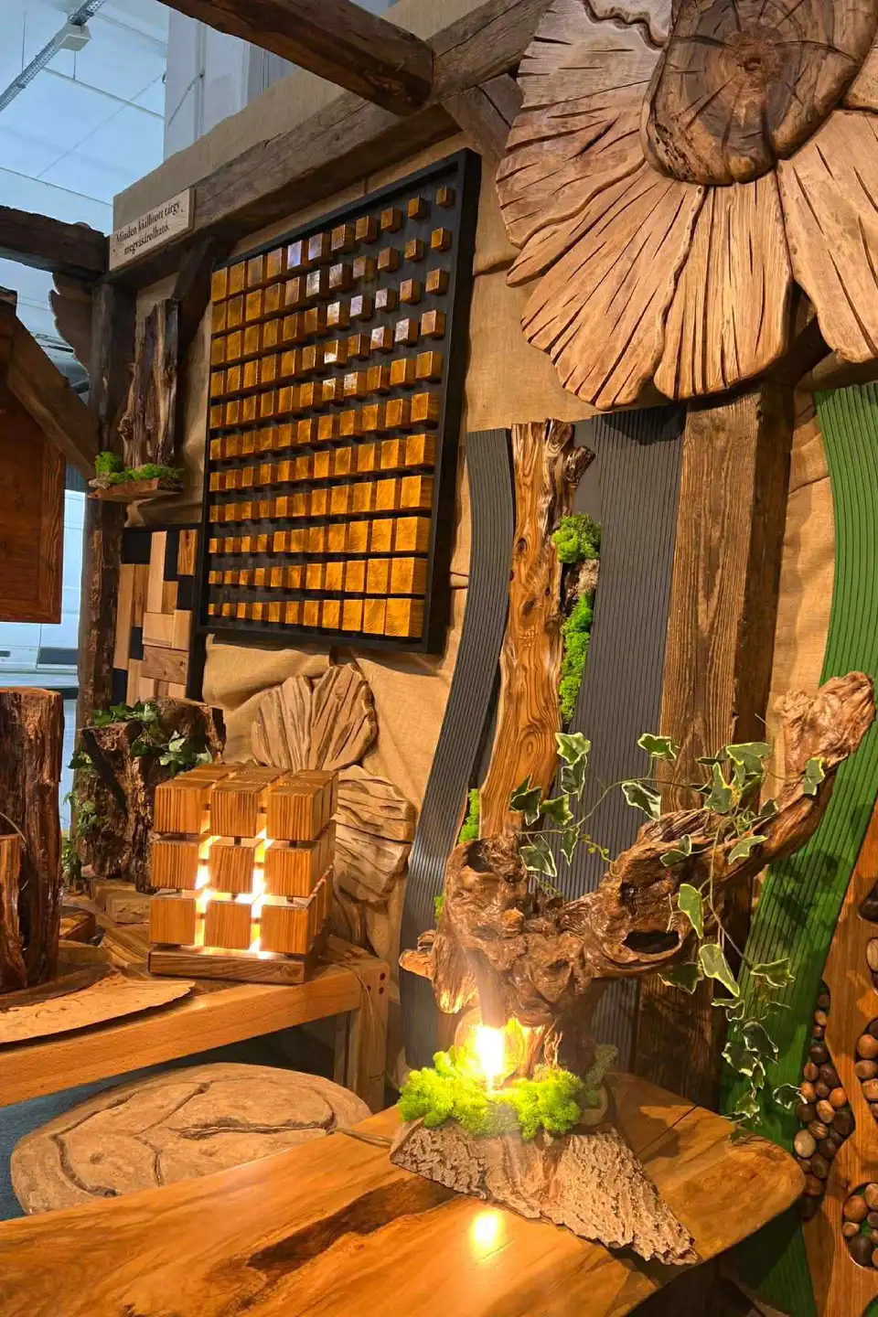 A hagyományos Mívesfa ajándéktárgyak természetesen most is fontos szerepet kaptak. Az egyedi faliórák és a fakönyvek már sok otthonban megtalálhatók. Ezek adták azt az ismerős alapot, amelyre a stand többi része épült.